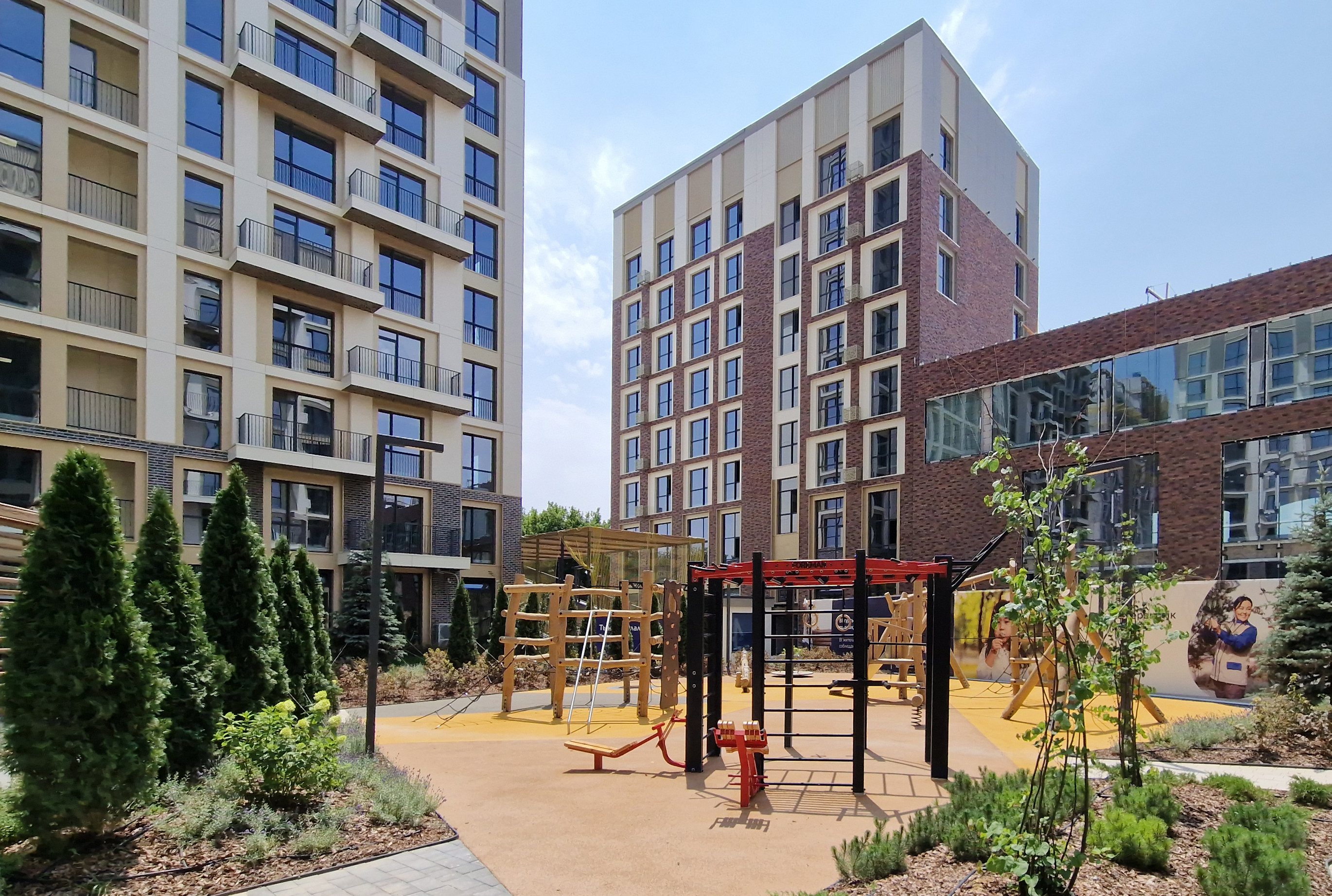 Проектом предусмотрено размещение на участке многоквартирного жилого комплекса состоящего из восьми жилых блоков различной этажности со встроенными помещениями, трехэтажного торгового центра и одноуровневого подземного паркинга. Комплекс расчитан на 421 квартиры с торговыми пространствами на первых этажах.